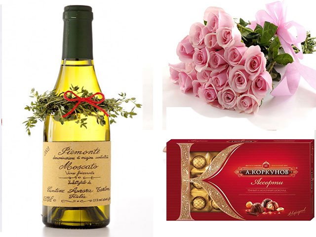 N'oubliez pas le bouquet. Il peut s'agir d'une brassée de roses rouges ou d'une magnifique fleur (par exemple, orchidéequi est présenté directement dans le pot).