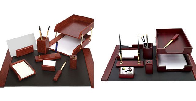 - ensemble de papeteriece sera là simplement irremplaçable; le stylo original dans une boîte avec ses initiales ou toute inscription; une étagère pour stocker des dossiers et ainsi de suite.