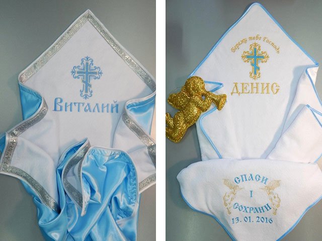 C'est une coupe blanche comme neige faite de tissu naturel. Le bébé est enveloppé dedans après la police. Il est décoré de broderies et d'une croix orthodoxe. Le tissu pour kryzhma est sélectionné en fonction de la période de l'année. Plus pratique tissu éponge dans celui-ci, l'enfant sera à l'aise après les fonts baptismaux dans les bras de la marraine.