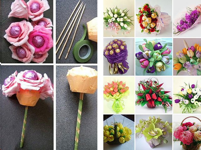 Afin de ne pas être banal et de ne pas simplement mettre les bonbons dans un sac, vous pouvez en faire des fleurs, que vous pourrez ensuite recueillir en bouquet de manière originale et magnifique.