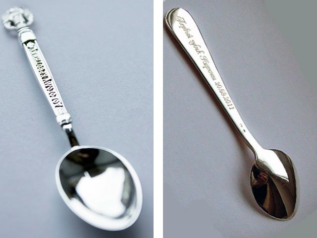 - Un bon cadeau symbolique pour une fille - cuillère d'argent (“Cuillère en argent sur la première dent”) sur laquelle vous pouvez graver le nom du bébé et la date du baptême.
