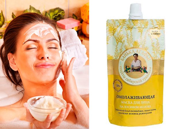 Le lait d'orignal nourrit parfaitement la couche supérieure de l'épiderme, lui confère de l'élasticité et résiste à toutes les rides du visage. Pour préparer un masque à partir de celui-ci, vous pouvez il suffit de le mélanger avec des infusions d'herbes ou des huiles essentielles aromatiquesqui peut être acheté à la pharmacie.Conservez ce mélange pendant une demi-heure, puis rincez à l'eau tiède et appliquez une crème de soin de base. Le «Granny Bathhouse» d'Agafya est une excellente alternative aux produits coûteux. Un tel masque d'alginate fait des merveilles, améliore la synthèse des protéines et fournit l'épiderme de soie.