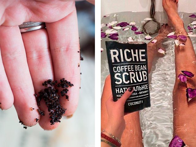 Le café peut également être mélangé. avec gel doucheAyant reçu deux en un - à la fois un gommage et un gel douche.