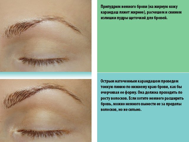 Comment dessiner les sourcils avec un crayon: photo en mode phasé