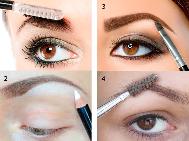 Nous peignons avec une brosse spéciale qui guide les cheveux. Avec un crayon rose pâle ou blanc, tracez un trait sous les sourcils et mélangez-le légèrement. Pour la correction, nous utilisons un pinceau dur biseauté et des ombres mates ou un crayon dur spécial pour les sourcils.