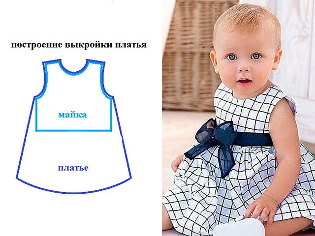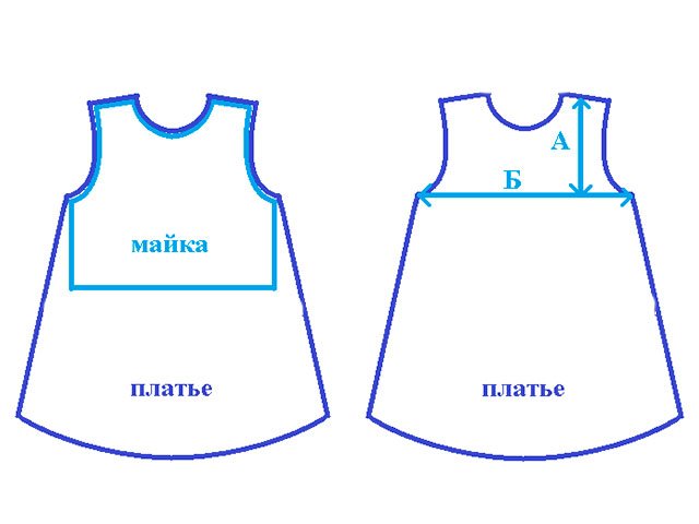 3. Avant de couper la même robe en tissu, vous devez mesurer si elle convient à l’enfant. Pour cela vous avez besoin lignes de mesure A et B. (Voir photo ci-dessous)