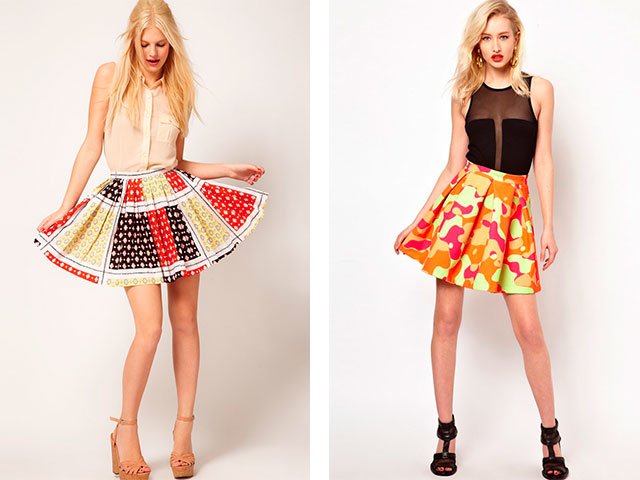 Ici, vous devez également choisir la bonne longueur - midi ou maxi. Donc, vous aurez l'air parfait. Vous pouvez combiner avec des chemisiers féminins. Les jupes de ce genre sont très belles en été - elles facilitent l’image. La chose principale - pas dans une bande horizontale, pas simple et sans un grand motif - cela rend l'image plus lourde.
