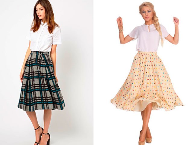 Pour les amateurs du style classique, des jupes longues au-dessous du genou avec des imprimés floraux conviennent. Ils préfèrent souvent une cellule classique ou une couleur unie. Pour les filles modernes, vous pouvez choisir un modèle long avec un jupon.