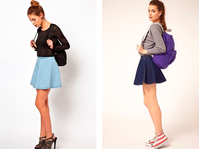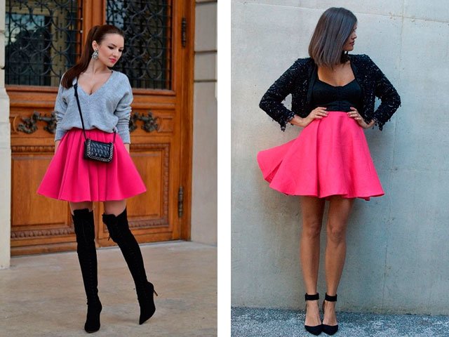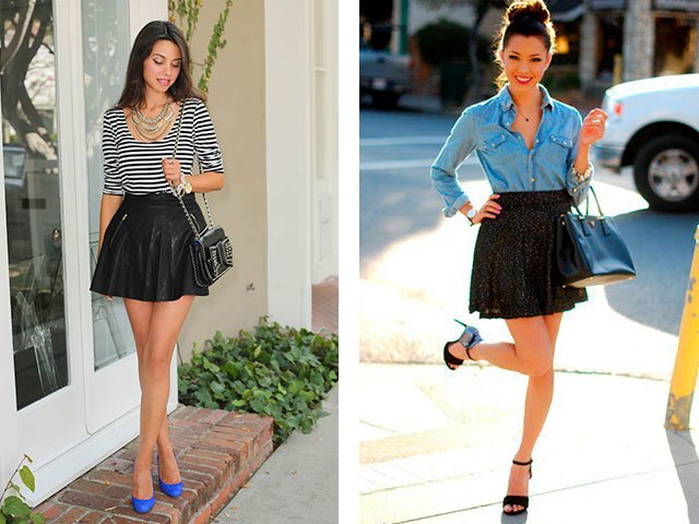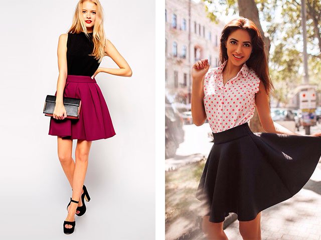 Si vous êtes propriétaire de belles jambes dont vous voudriez vous vanter ou si vous êtes juste une jeune fille courageuse qui ne préfère pas le style classique, alors cette image est pour vous! Vous pouvez mettre une telle jupe en toute sécurité au travail et au club, mais il est préférable que ce soient deux jupes différentes. Le premier peut être une cage grise ou noire, avec une impression élégante, ou simplement une couleur pastel. Mais dans un club ou lors d'une fête, la jupe du soleil est brillante, couleurs stimulantes: rouge, bleu, jaune, mais n'oubliez pas les couleurs néon.