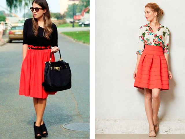Et pour les filles qui veulent cacher quelques centimètres de la taille, il existe une solution: une jupe pare-soleil à taille haute. Il est idéal pour ceux qui veulent souligner leurs hanches et se diriger vers une taille étroite, en raison de la large ceinture. Ces choses-là sont magnifiques avec des chaussures à talons hauts ou des sandales, qui soulignent encore plus la grâce de cette image. Ces modèles sont cousus à partir de différents matériaux pour différentes occasions et saisons. Les plus populaires sont les jupes de soleil à taille haute en velours, en tricot, en satin ou en tissu épais pour la saison froide.