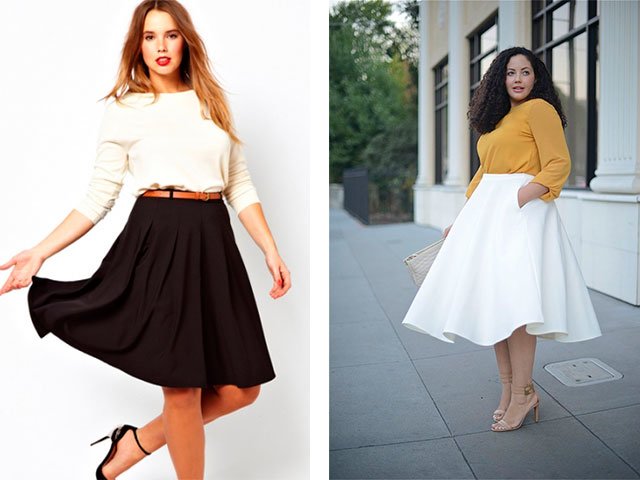 Pour les filles complètes, c'est l'un des meilleurs modèles.Elle cache idéalement ce qui doit être caché et se concentre sur ce qui doit être souligné dans une telle figure. Cette jupe met parfaitement en valeur la taille et le buste, cachant tous les défauts. L'achat de sous-vêtements de cette manière n'est également pas superflu.