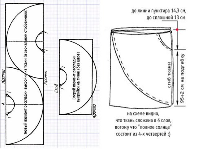 Ce style diffère de la jupe pare-soleil habituelle en ce qu’il a des coutures et que la jupe elle-même n’est pas découpée dans un cercle, mais dans un demi-cercle à la base même du soleil. De plus, il y a un problème de couture, mais vous pouvez vous en passer - coudre une jupe avec une odeur de soleil.