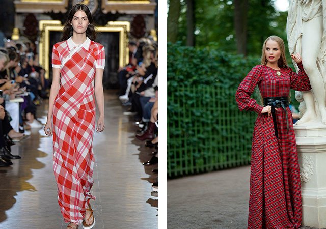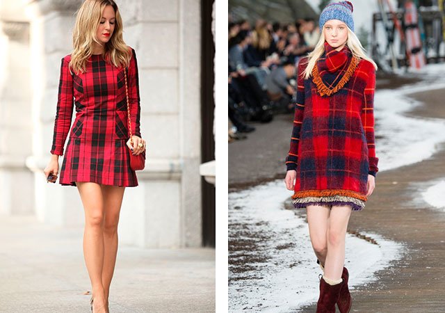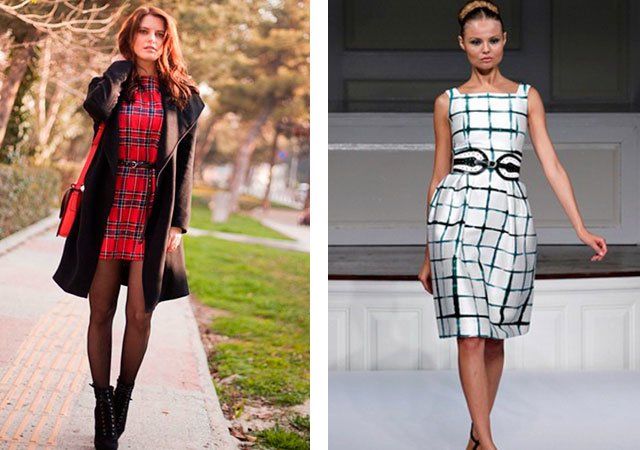 Cet été, il sera à la mode de porter non seulement une cage noire et blanche, mais aussi du rouge et du jaune. Habituellement, pour les promenades estivales, le tricot est préférable et il est préférable de choisir une robe en laine à carreaux d'hiver.