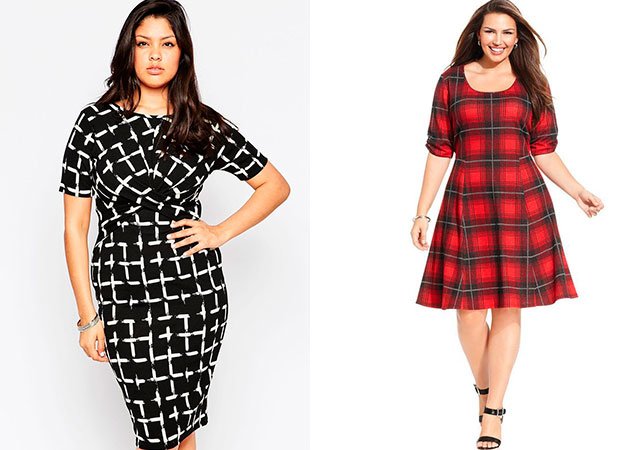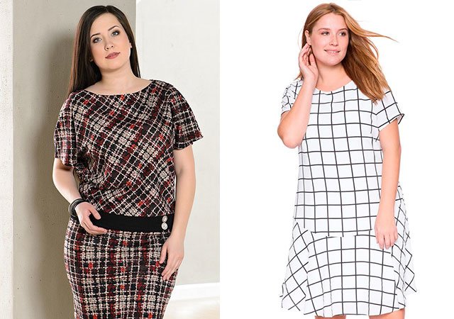 Si vous choisissez une décoration de soirée, faites attention au violet, au bleu, au marron et au noir avec toutes les couleurs de la cellule. Les bijoux dans ce cas devraient être miniatures. Dans le tissu, choisissez le coton, le tricot, la guipure ou la soie. Mais une robe chaude en laine dans un chèque complet ne fonctionnera pas. Pour les grandes tailles, un costume à carreaux, une jupe pare-soleil et une robe chemise conviendront bien.