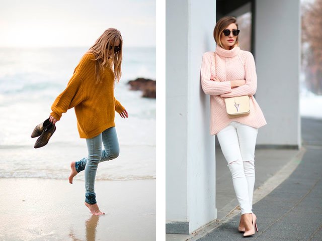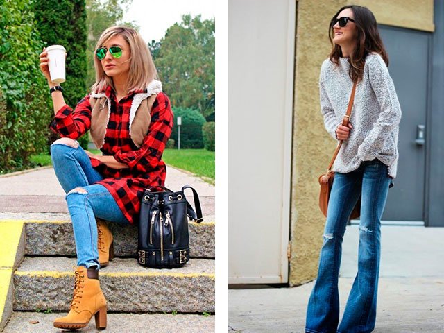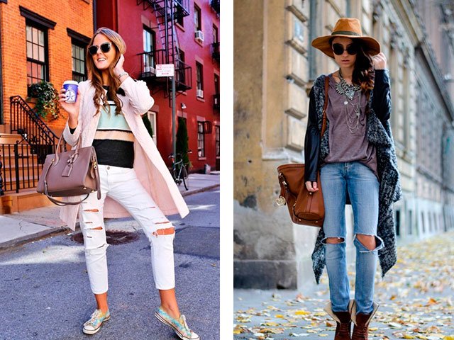 Cet automne, les choses sont très populaires dans le style du "oversize" (sans dimension), des escarpins et des jeans déchirés.