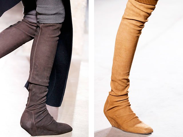 - Bas de bottes Cette saison est au sommet de la popularité, mais tout le monde ne peut se permettre un tel plaisir. Les propriétaires de longues jambes fines soulignent leur beauté, et les jambes pleines et incurvées se concentrent uniquement sur les défauts.