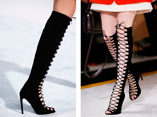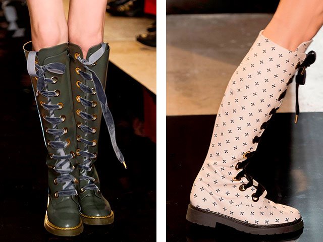 - Modèles de laçage également très populaire cet automne et cet hiver. Ils décrivent la ligne verticale et rendent les jambes visuellement plus minces.