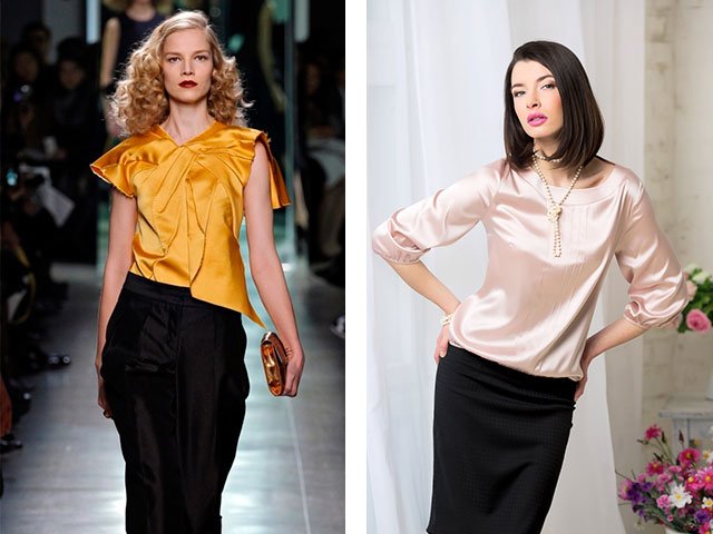 La grâce et l'harmonie de la silhouette soulignent parfaitement la belle soirée haut du satin. Même le plus simple des matériaux de bonne qualité créera un look solennel et élégant.