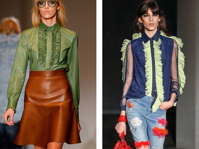 Si vous souhaitez créer un look aéré et léger, des vêtements à volants vous aideront à cela. Il peut être combiné avec une jupe et un pantalon. Sans crainte, allez à une réunion de travail ou à une réunion entre amis.