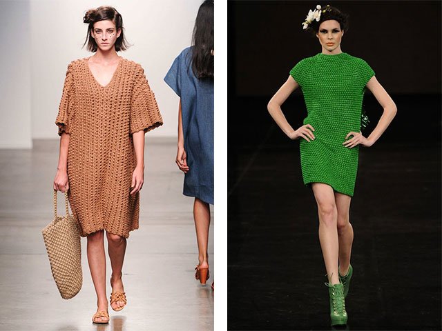 Selon de nombreuses photos de défilés de mode, le retour de la mode des années 80 avec abstraction, motifs géométriques et chaotiques faciles à crocheter est remarqué.
