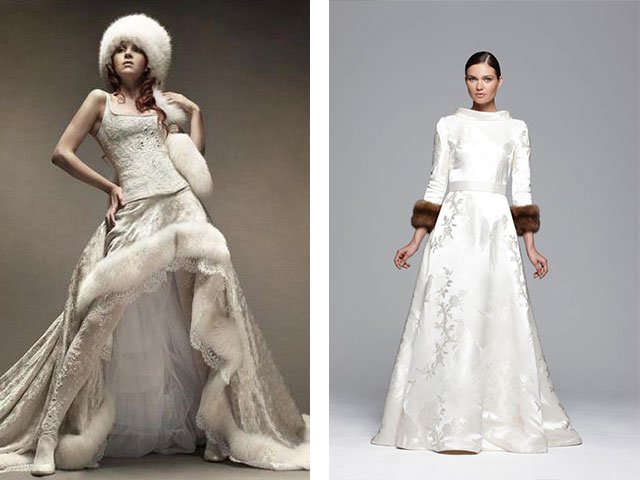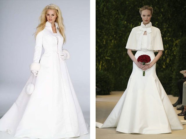 A votre goût, choisissez sur la photo ce qui vous convient le mieux. Choisir une robe de mariée pour la mariée dans le froid n’est pas facile, elle devrait être belle et chaude. Par conséquent, si vous n’avez pas confiance en vos capacités, il est préférable de confier ce travail au maître, car l’automne et l’hiver sont également des moments propices aux mariages et vous ne devez pas avoir peur du froid.