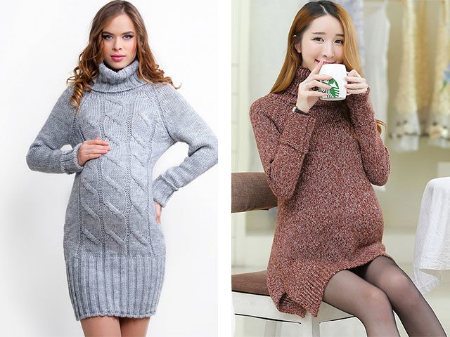 Dans tous les vêtements, il y a un centre de composition, et dans le cas des femmes enceintes, le ventre est arrondi. Par conséquent, les styles de robes d'hiver sont presque toujours simples avec une finition légère et délicate. Les modèles longs ou les idées à taille haute qui peuvent être portés après l'accouchement sont également intéressants.