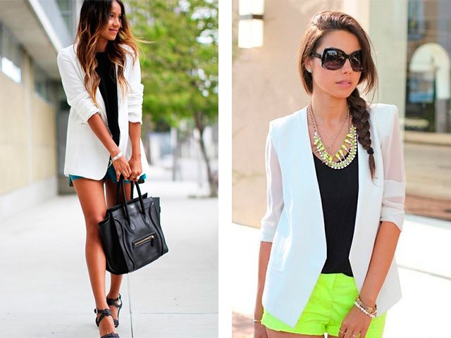 Les vestes blanches sont très romantiques, même si elles sont habillées avec un pantalon strict. Ils donnent à l'image légèreté et élégance. Ils fonctionnent bien avec un pantalon blanc ou un jean léger.