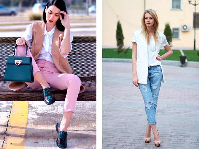 En outre, ils sont très élégamment combinés avec un pantalon noir ou une jupe et un jean foncé. L'essentiel est que les chaussures soient en talons hauts - cela donnera plus de charme. Et choisissez-les en fonction de votre pantalon.