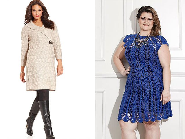 Des robes tricotées pour le plein peuvent être créées avec des aiguilles à tricoter et au crochet. L'essentiel est de choisir le bon fil et un beau motif qui atténuera les défauts et de se concentrer sur le fond. Les dessins dans ce mode de réalisation sont préférables pour sélectionner de belles longitudinales. La longueur des produits est généralement choisie au maximum, surtout si le modèle est choisi - une robe d'été (modèles d'été ou chaud). Mais les tuniques sont assez harmonieuses pour les femmes à part entière. Il est préférable de desserrer la manche, parfait, par exemple, raglan. Ces recommandations sont également pertinentes pour les femmes enceintes.