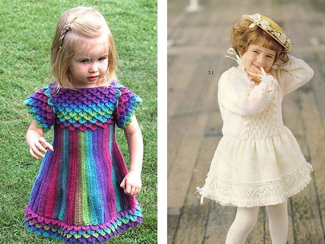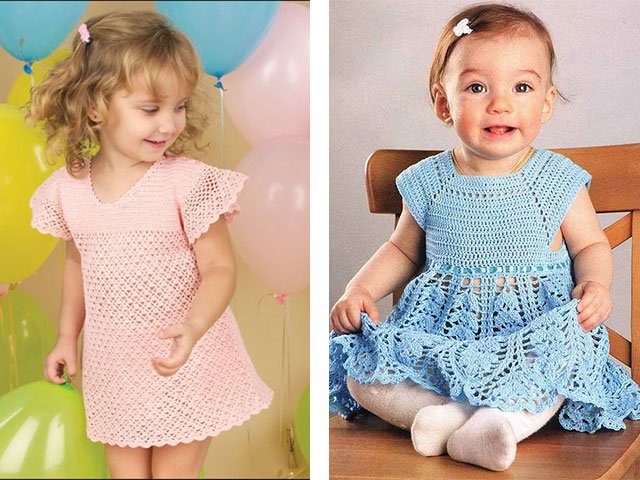 La robe tricotée au crochet pour une fille peut également avoir de nombreuses formes et motifs, qui sont parfaitement illustrés par les photos des enfants. Voici les robes chaudes pour enfants pour l'hiver, les robes d'été pour enfants et les tuniques provocantes pour enfants, etc. Mais les robes pour enfants en dentelle avec un beau motif floral se distinguent par un charme particulier.