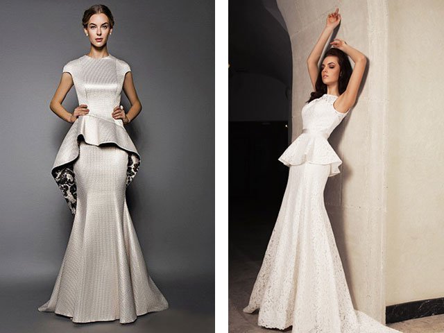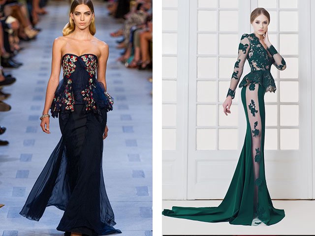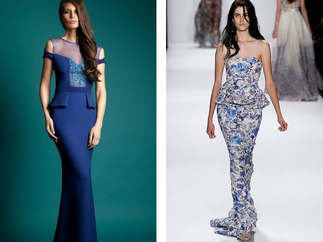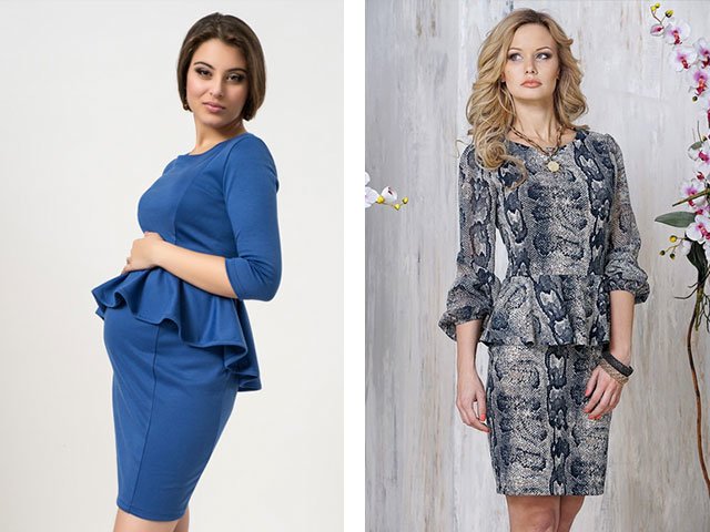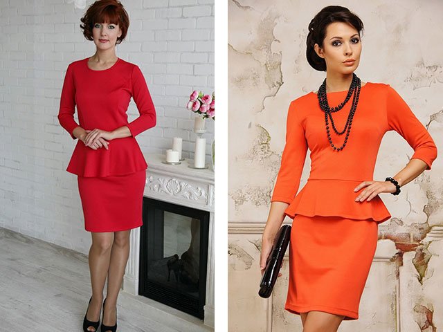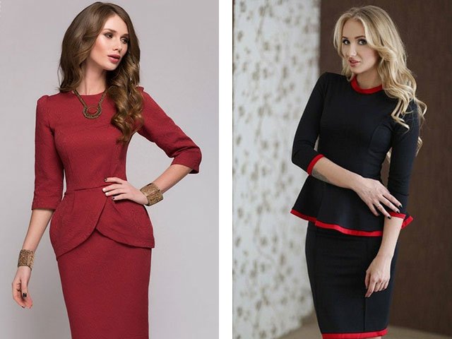 La saison à venir sera conquise par une collection de robes avec un péplum avec une manche aux trois quarts. La tendance à la popularisation des manches mi-longues n'est pas la première chute, cette année, le basque l'a complétée. Une telle tenue, par exemple en jacquard, est très belle et s’intègre parfaitement au bureau. Mais le midi peut être porté lors d'un événement officiel. Sur les filles minces, une robe de poisson rose semble parfaite. Sur la photo, il y a une robe noire avec des basques, du tricot et d'autres qui auront toujours fière allure.