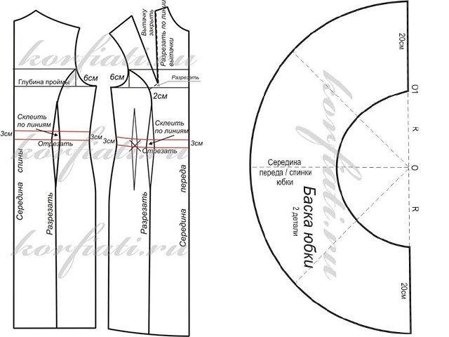 La photo montre comment couper correctement cette partie. Le modèle est simple et vous pouvez y faire face en quelques minutes. Un peu plus et le peplum sera orné de rouge ou de noir, long ou court, et peut-être une robe de mariée avec ou sans manche.