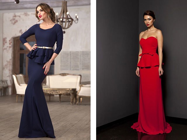 La robe longue du soir, où le péplum devient un train, a reçu les critiques les plus flatteuses des fashionistas. Il semblerait qu’une coupe simple, une silhouette classique, mais que cette tenue puisse idéalement remplir sa fonction. Au moins une robe avec un péplum doit être présente dans la garde-robe. Vous pouvez le commander en cousant, ou regarder un cours de vidéo sur le sujet «coudre vous-même», ou en acheter un fini en visitant un magasin de mode. Avec quoi le porter? Ce look élégant complétera votre pochette, votre bracelet ou vos boucles d'oreilles.