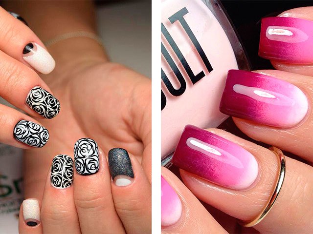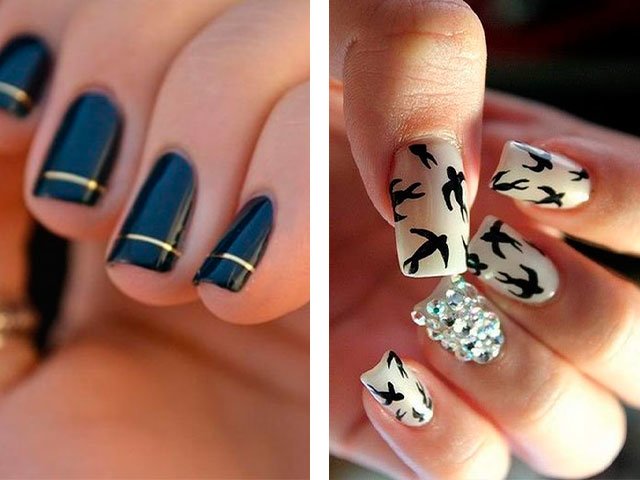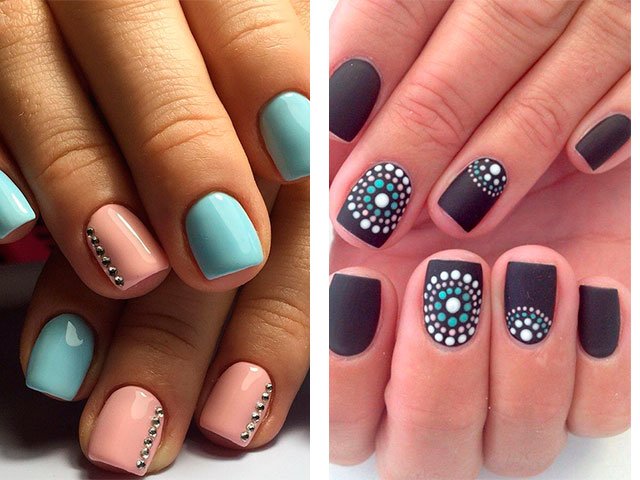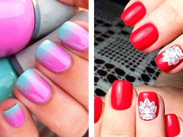 De nos jours, il est à la mode de peindre des ongles d’une seule couleur ou d’appliquer un motif léger à l’aide d’un gel lustrant. La tendance est aux paillettes, à la toile d’araignée, aux étincelles, aux autocollants, aux rayures, aux triangles et aux points.