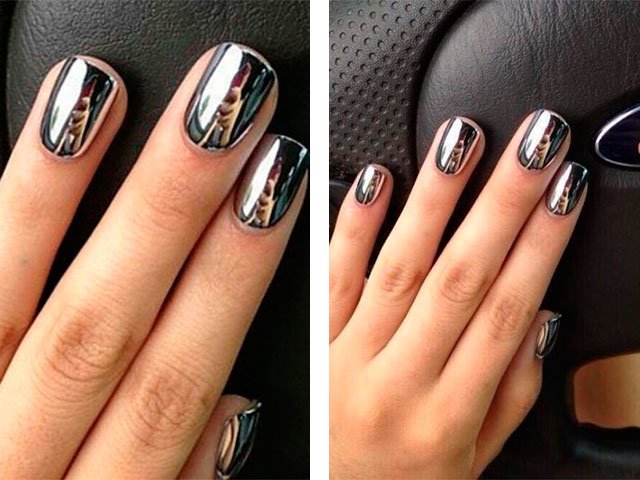 Parmi les leaders de couleur inclus dans le haut, on peut noter: or, argent (argent ou acier brillant) et noir. Et bien sûr, beaucoup de femmes s'intéressent aux sujets suivants: ce dont vous avez besoin pour une manucure miroir à la maison et comment choisir un vernis pour une manucure miroir. Lisez les réponses et les recommandations ci-dessous.