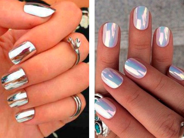 Selon ce concept, il est supposé créer l’effet d’un miroir sur les ongles avec une réelle capacité de réflexion, sa particularité est briller - briller. Il s'inscrit parfaitement dans tendances glamour spectaculaires de la réalité d'aujourd'hui (la tendance hollywoodienne du nail art est de plus en plus demandée).
