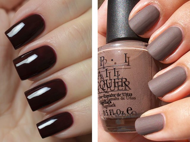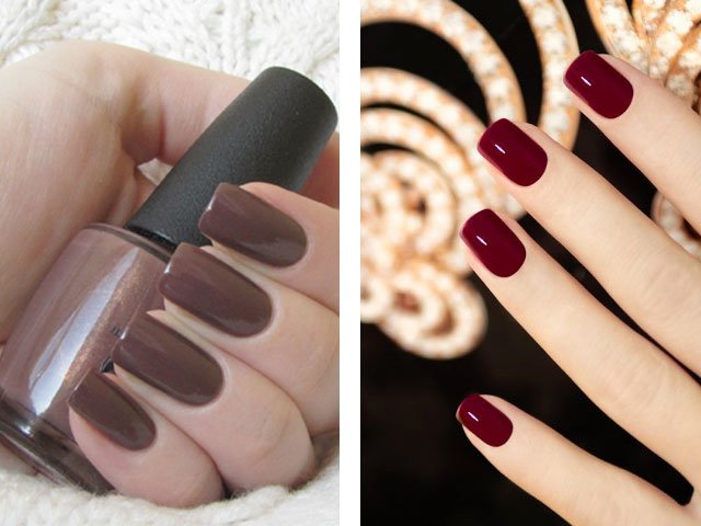 Les tons crème, gris clair et vert seront également populaires. Le ton universel du vernis à ongles, les concepteurs ont choisi la couleur à la mode du vin rouge foncé, qui convient à merveille à tout vêtement et à toute image (la photo des blogueuses de mode le confirme).