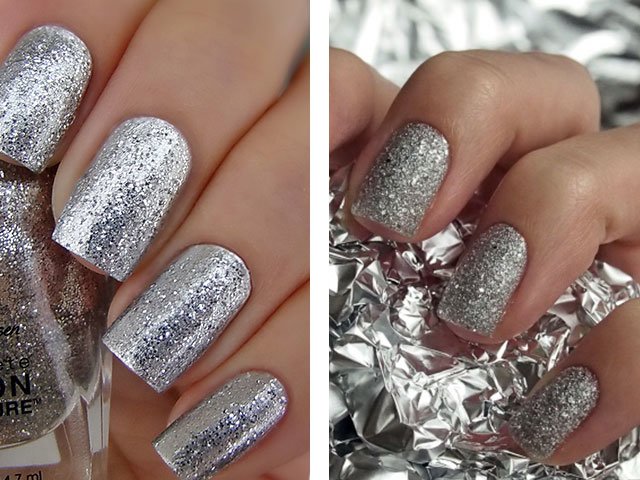 Paillettes d'argent - manucure tendance avec des étincelles de couleur argentée. Idéal pour un look de fête.