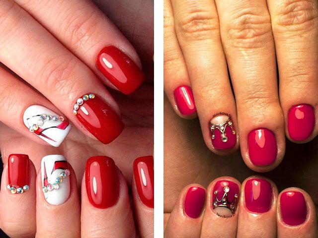 - 2 Idées modernes de manucure rouge avec des strass