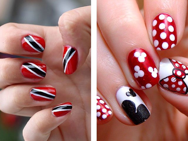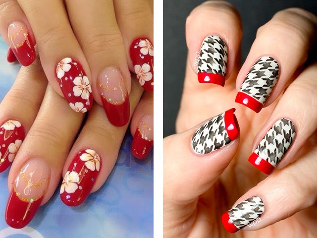 - 1.3 Manucure rouge avec du blanc et du noir.