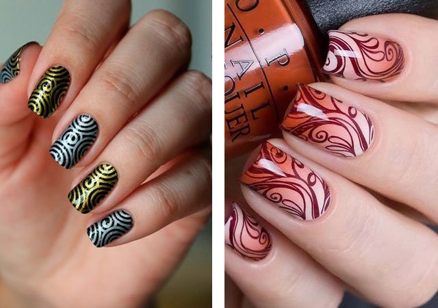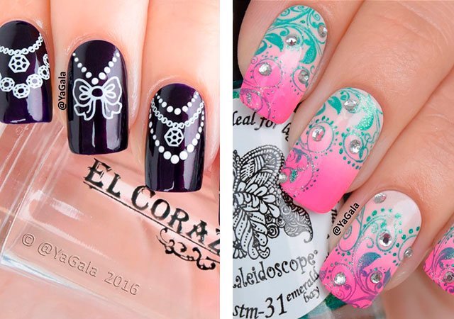 Grâce à l'estampage, vous pouvez vous-même, sans l'aide de maîtres professionnels, créer chez vous un dessin d'ongle impeccable et luxueux. Un peu de pratique et de marquage sur les ongles sera une activité fascinante pour vous. Nous présentons à votre attention une photo des dernières idées en matière de manucure et d’actualité de l’estampage cette année.