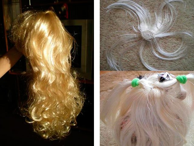 Une perruque suffira pour deux poupées si elle est étalée sur des bandes séparées qui la composent. La bande est tordue avec un "escargot" et fixée avec un fil. Ensuite, cette "coquille" est cousue sur la couronne. Les bandes restantes, l'une après l'autre, sont fixées autour de la cochlée en cousant avec une aiguille. La coiffure peut être décorée d'arcs et d'épingles à cheveux pour les petites fashionistas.
