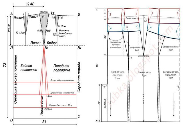 Sur la chaîne YouTube, il existe une excellente classe de maître dans laquelle il est montré pas à pas comment couper correctement le matériau pour créer la jupe souhaitée. Après avoir étudié les images et les photos sur Internet, après avoir choisi le modèle (il peut s'agir d'un élastique et d'un empiècement, d'une fente, d'une ceinture et d'une doublure, ainsi que sans pinces), couper une jupe indépendamment et ses détails ne seront pas difficiles.