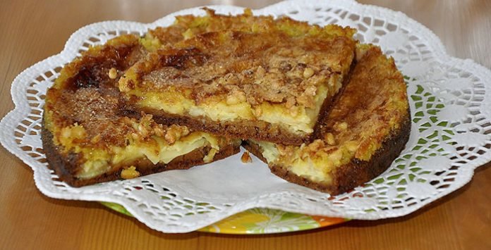 Saupoudrer le tout avec du sucre brun (un peu). Et mettez encore 10-15 minutes. au four à 200 degrés jusqu'à coloration dorée.