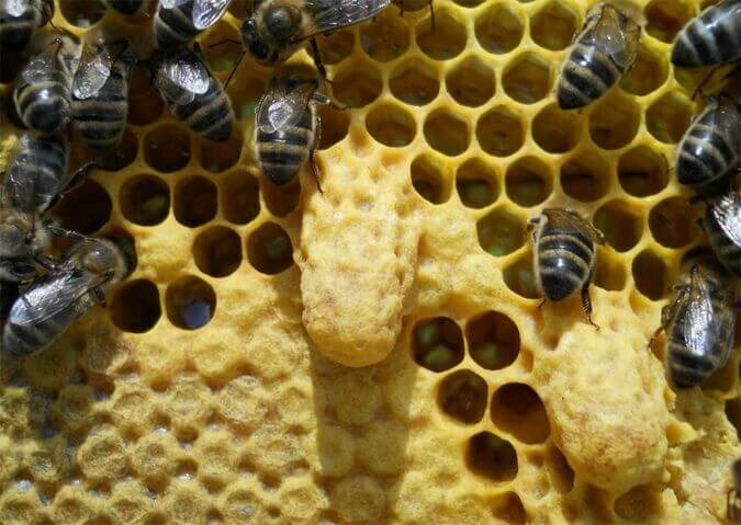 Pendant ce temps, dans la famille qui a libéré l'essaim, il reste un grand nombre de couvées, ce sont de futures jeunes abeilles, ainsi que des cellules de reines.