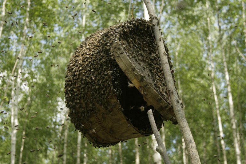 Ce sont de jeunes abeilles qui n’ont pas pris part au travail, il leur fallait économiser l’énergie de leur corps afin de créer une nouvelle maison. Un essaim peut s'installer n'importe où: dans une crevasse d'un rocher, un trou ou dans un vieux creux.