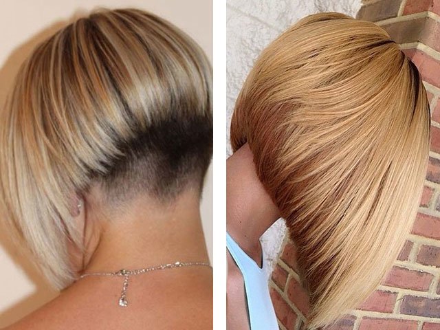 Une coupe de cheveux bob avec des mèches allongées à l’avant et une chevelure courte à l’arrière est idéale pour les femmes actives. Cela diffère de la variation classique des cheveux nettement raccourcis à l'arrière: ils peuvent couper l'arrière de la tête sous le garçon, peut-être avec une jambe, avec une belle échelle, etc. Sur la photo, vous pouvez voir une présentation différente d'une telle coupe de cheveux.