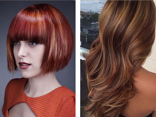 Une autre option de colorisation pour les femmes ou les brunes aux cheveux bruns consiste à colorer les mèches clarifiées en rouge et en cuivre. À propos, les tons chauds sont maintenant à la mode.