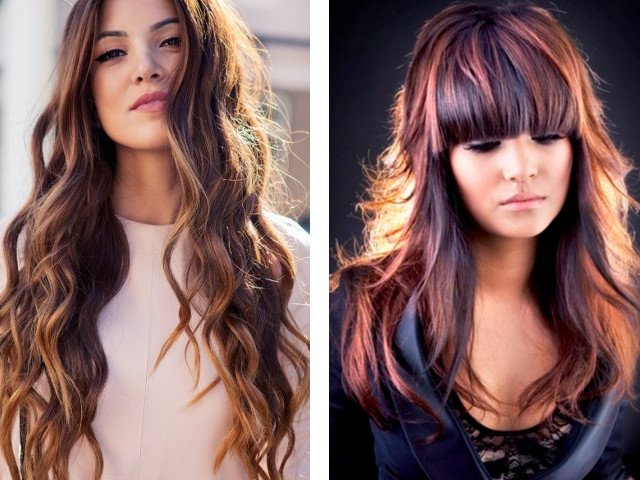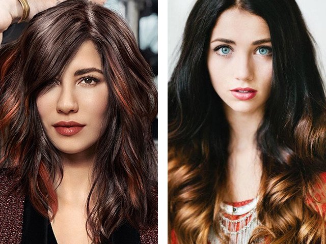 Les brunes ou les propriétaires de cheveux foncés conviennent à la coloration dans des tons de chocolat chaud. La couleur des racines est considérée comme fondamentale et devrait être la plus sombre. Par exemple, si les racines sont de couleur marron ou chocolat, vous pouvez ajouter des fils de cuivre, de blé et de caramel.