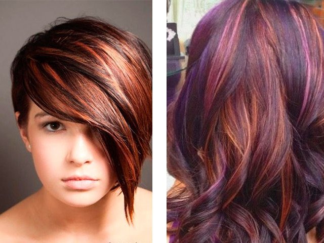 Si vous souhaitez créer un look plus extrême - les cheveux foncés peuvent être combinés avec des fleurs: aubergine, acajou (acajou), violet ou violet.